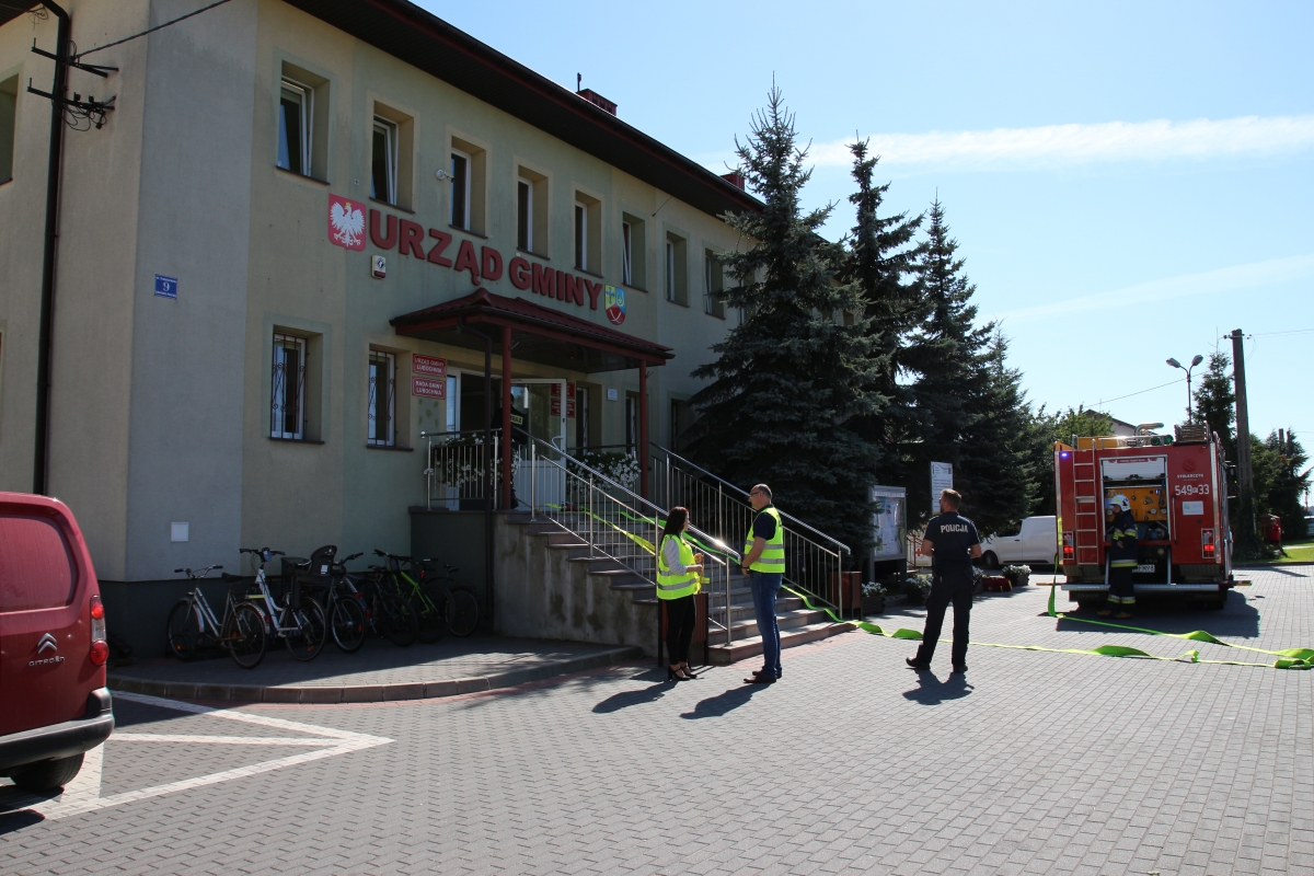 Ćwiczenia przeprowadzone były w oparciu o fikcyjną sytuację wystąpienia pożaru wewnątrz obiektu, który wymagał uruchomienia i przeprowadzenia natychmiastowej ewakuacji personelu Urzędu Gminy oraz powiadomienia alarmowego Straży Pożarnej.