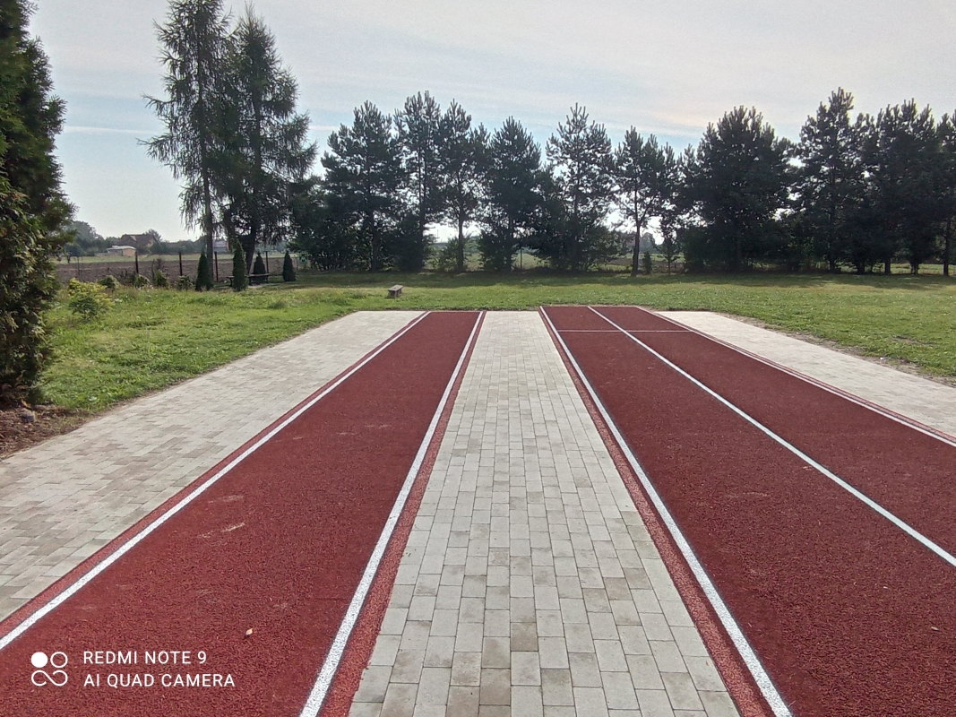 2. Wykonanie bieżni o długości 35 m wraz ze strefą startu o długości 4 m oraz skocznią w dal.