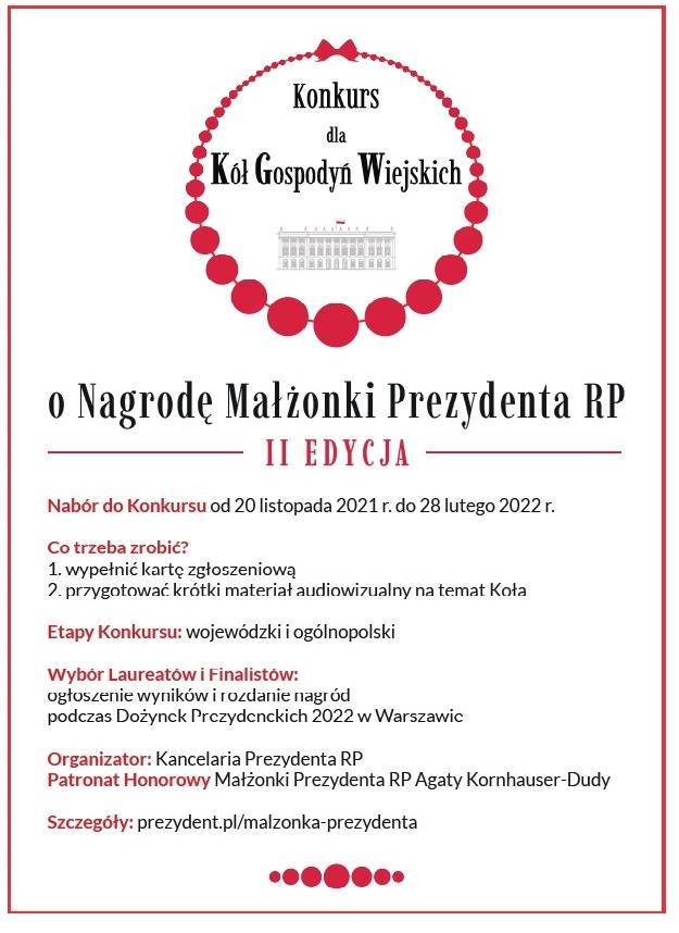 Konkurs dla Kół Gospodyń Wiejskich o Nagrodę Małżonki Prezydenta RP