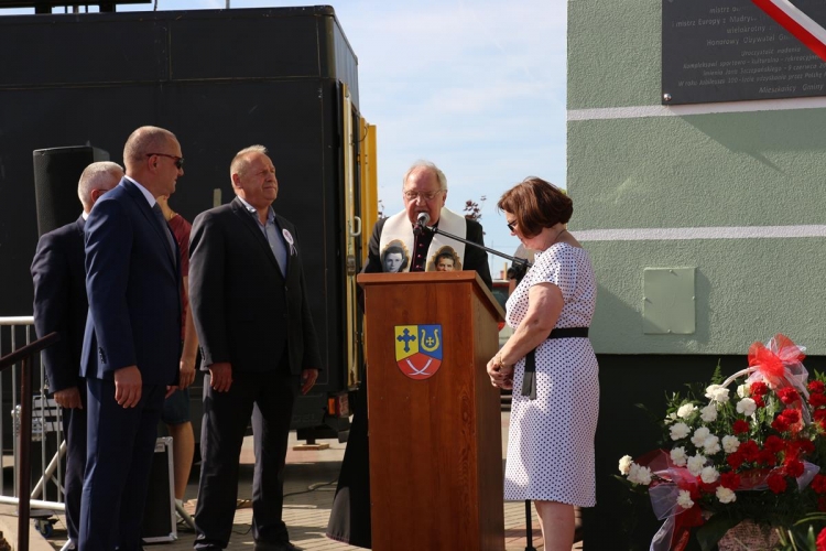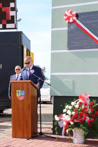 Pan Robert Lek wnuczek Jana Szczepańskiego złożył w imieniu całej rodziny podziękowanie władzom samorządowym za kultywowanie pamięci o jego dziadku, a Pani Wiesława Szczepańska wręczyła  p. Wójtowi pamiątkowy dyplom Jana Szczepańskiego, który otrzymał  za zdobycie tytułu vice mistrza Polski w boksie w roku 1958.