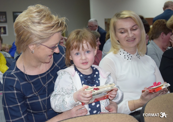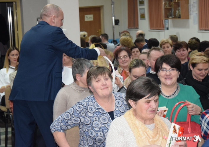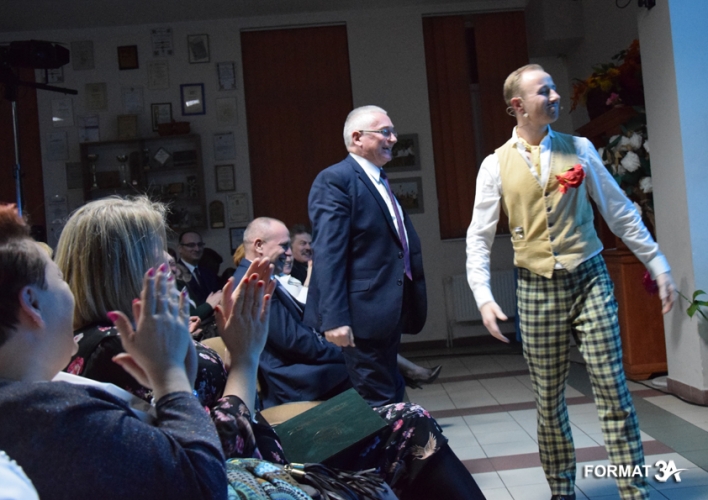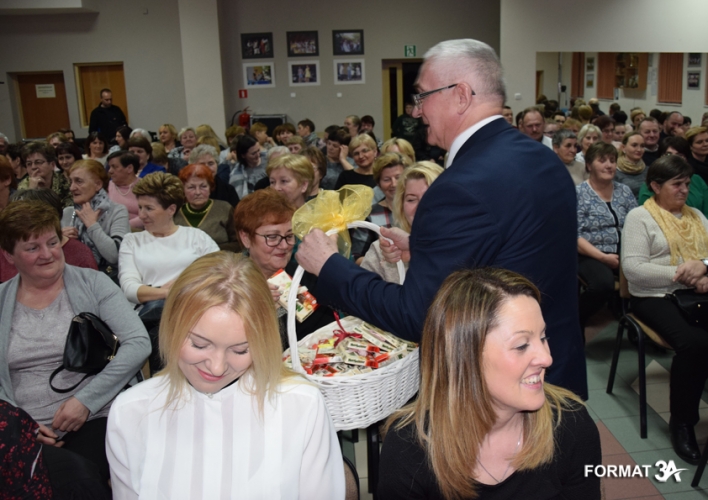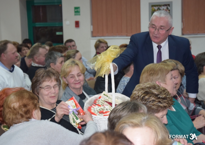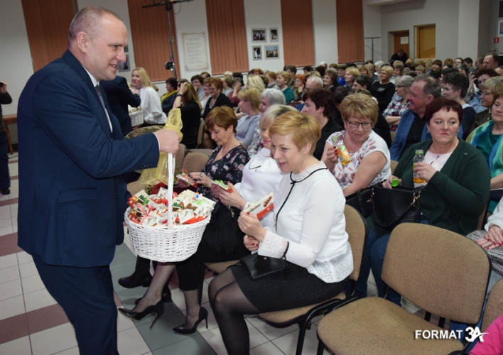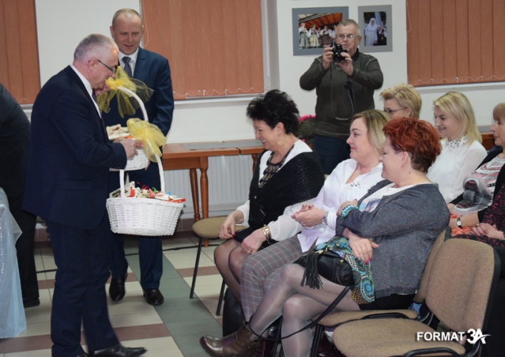 Po spektaklu wójt Tadeusz Józwik i przewodniczący Rady Gminy Tadeusz Skoneczny złożyli życzenia wręczając każdej pani tabliczkę czekolady, a Piotr Majchrowski na ręce żony przewodniczącego – pani Elżbiecie Skonecznej złożył bukiet kwiatów i życzenia do wszystkich kobiet gminy.
