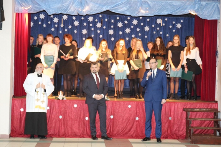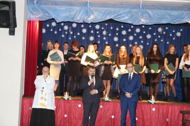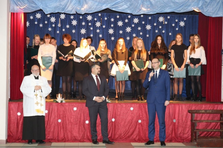 Po powitaniu gości Wójt Gminy Piotr Majchrowski wraz z Przewodniczącym Rady Gminy Pawłem Bachura złożyli wszystkim zebranym oraz mieszkańcom gminy życzenia świąteczne i noworoczne. Proboszcz Parafii Lubochnia ks. dziekan Tomasz Bojanowski odprawił wspólną modlitwę, po której zebrani przełamali się opłatkiem składając wzajemnie życzenia.