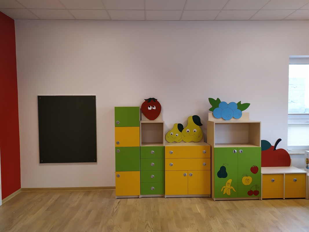 • Część I – Wyposażenie meblowe, m.in. wyposażenie sal przedszkolnych, szatni i korytarza, łazienek